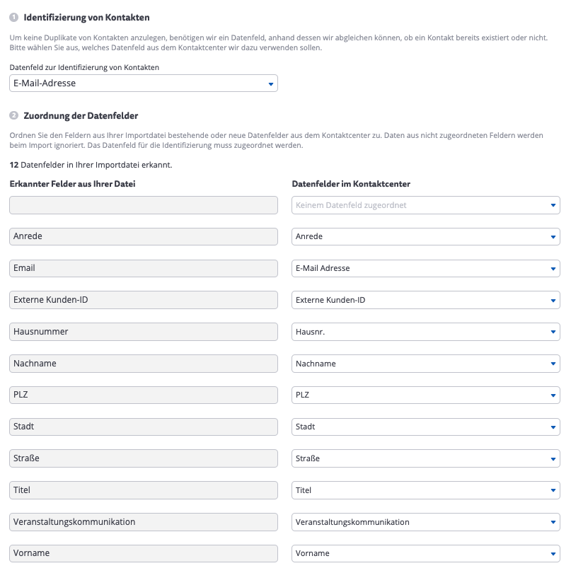 Im letzten Schritt müssen Sie die Datenfelder zuordnen.