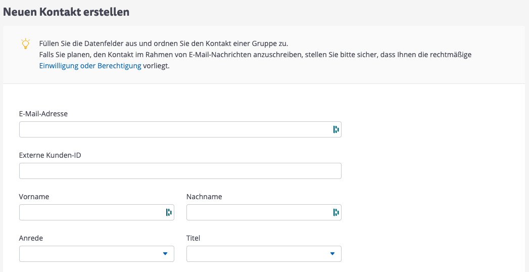 Klicken Sie auf „Neuen Kontakt erstellen“ um einzelne Kontakte manuell hinzuzufügen.