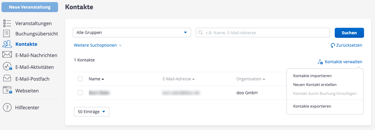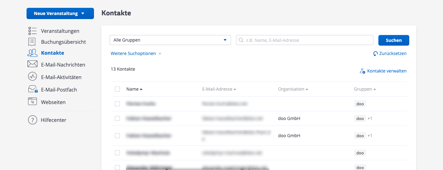 Die Einladungsliste empfiehlt sich insbesondere wenn sich Ihr Event sich an einen bereits bekannten Personenkreis richtet, deren Kontaktdaten im doo Kontaktcenter vorliegen.